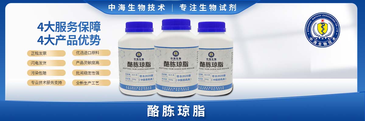 中海酪胨瓊脂培養(yǎng)基用于需氧菌的無(wú)菌檢驗(yàn),需氧菌是指具有較為完善的呼吸酶系統(tǒng),需分子氧做受氫體,只能在有氧條件下生長(zhǎng)繁殖的菌類(lèi)。而酪胨瓊脂培養(yǎng)基(GA)含有胰酪蛋白胨、酵母浸出粉、L-半胱氨酸鹽酸鹽、葡萄糖、氯化鈉和瓊脂粉成分,在這些成分中胰酪蛋白胨又稱(chēng)為胰酶消化酪蛋白胨,含有豐富的氮源和氨基酸等;酵母浸出粉是經(jīng)自溶、酶解、濃縮、干燥等工藝制成的,富含蛋白質(zhì)、B族維生素、生長(zhǎng)因子以及微量元素等營(yíng)養(yǎng)成分,葡萄糖是生物的主要供能物質(zhì);氯化鈉維持均衡的滲透壓;而瓊脂粉具有特殊的凝膠性質(zhì),可作為培養(yǎng)基的凝固劑使用。中海生物酪胨瓊脂培養(yǎng)基中的成分可以為需氧菌的生長(zhǎng)提供營(yíng)養(yǎng)成分,為需氧菌的無(wú)菌檢驗(yàn)創(chuàng)造條件。
